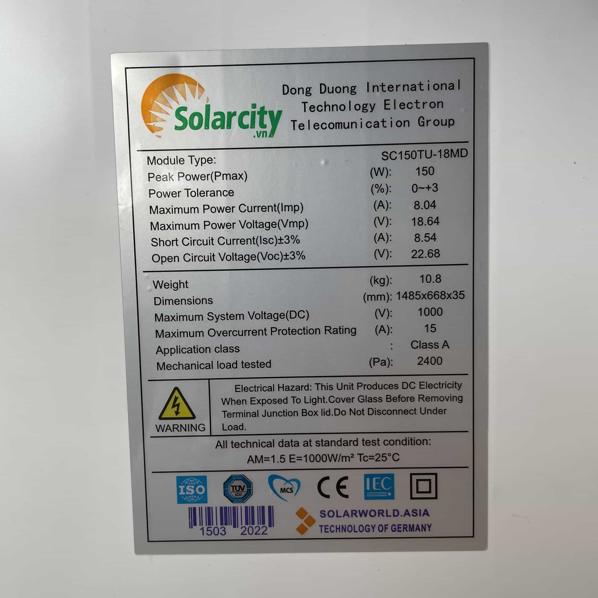 Tấm Pin Mặt Trời Mono SOLARCITY 160W
