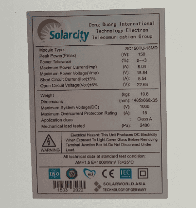 * Thông số kỹ thuật tấm PIN NĂNG LƯỢNG MẶT TRỜI MONO 150W