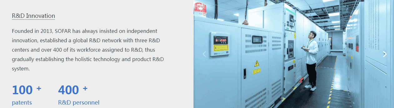“SOFAR was founded in Shenzhen in 2013. Over the past ten years, the company has focused its efforts on the new energy business, placing emphasis on developments and technological breakthroughs in photovoltaics, energy storage, on-board power supplies, data centers and other products, as well as the in-depth exploration of the global market. To date, SOFAR has established itself as one of China’s top 5 string inverter enterprises and the world’s leading supplier of turnkey solutions for energy storage systems. Our products and system solutions have been put into service in more than 90 countries and regions worldwide.”