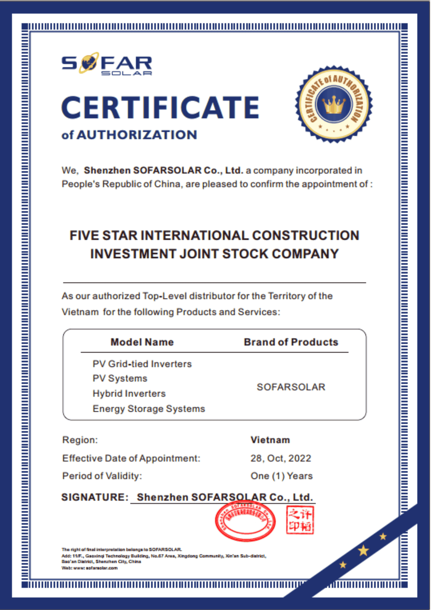 SOFAR SOLAR – CERTIFICATE OF AUTHORIZATION